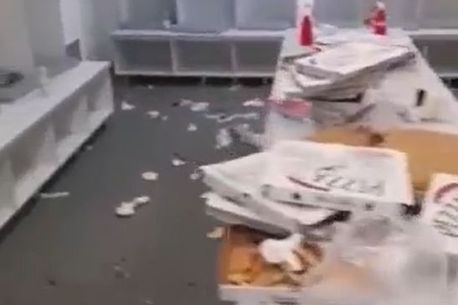 Jucătorii de la CFR Cluj au lăsat în urma lor cutii de pizza goale, sticle de apă și alte gunoaie.